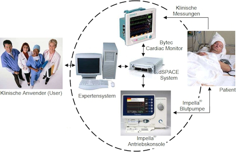 Bei der Entwicklung des Herzunterstützungsassistenzsystems kommt ein breites Spektrum von Methoden zum Einsatz. Diese reichen von der Modellierung des Herz-Kreislauf-Systems (mathematische Physiologie) über die Regelung mechatronischer Systeme (Moderne Regelungstechnik) bis hin zu der Entwicklung von Expertensystemen (Künstliche Intelligenz). Die Integration verschiedenster Disziplinen ermöglicht neue und innovative Ansätze zur Beantwortung offener Fragen in der Erforschung der gezielten Herzunterstützung. Ein Beispiel dafür ist der entwickelte Hardware-in-the-Loop Prüfstand. In diesem künstlichen Kreislauf können mit Hilfe eines mathematischen Modells des menschlichen Blutkreislaufs und modernen Verfahren der Regelungstechnik Extremsituationen herbeigeführt werden, die im Tiermodell unmöglich oder nur unter größtem Aufwand realisierbar wären. Zusätzlich trägt die Möglichkeit von Tests in einem künstlichen Kreislauf unter Laborbedingungen dazu bei, die Anzahl notwendiger Tierversuche zu reduzieren.