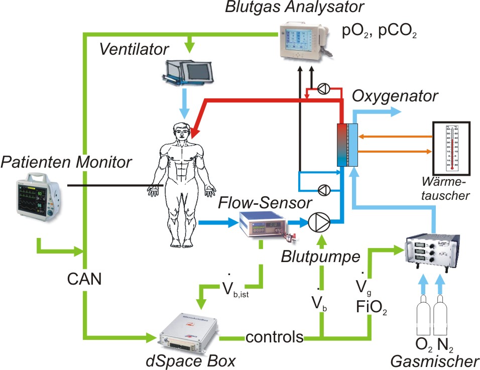 Für die Umsetzung der kooperativen Steuerung wurde ein robustes und dezentrales Steuerungssystem eingerichtet, um die extrakorporalen Gasübertragungsraten entsprechend des Bedarfs des Patienten anzupassen.