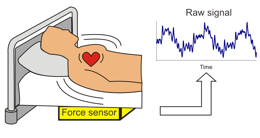 Ein Ballistokardiogramm (BKG) ist eine Aufzeichnung der Bewegungen des Körpers die durch die mechanische Aktivität des Herzens ausgelöst werden. Moderne Ballistkardiographiesysteme können für den Patienten unsichtbar in ein Bett integriert werden. Dabei lassen sich neben der Herzaktivität auch Atmungsbewegungen und die allgemeine Aktivität der Person im Bett mit einem einzigen Sensor bestimmen. Dieser Ansatz eignet sich daher besonders gut für eine kontaktlose Langzeitüberwachung von Atmung und Herzrate während des Schlafes.