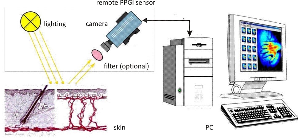Diese Parameter könnten durch die intelligente Fusion mehrerer kamerabasierter Messverfahren erfasst werden, die zur Bestimmung eines Frühwarnparameters genutzt werden können. Hierbei handelt es sich um das kabellose PPG (Photoplethysmography Imaging, kurz PPGI) mittels RGB-Kamera und die Infrarot-Thermographie. Die beiden Kamerasysteme decken dabei unterschiedliche spektrale Empfindlichkeitsbereiche ab und nehmen unterschiedliche Funktionen zur Vitalparametermessung wahr. Während das PPGI die Erfassung von Herzrate und Perfusion im Gewebe und zusätzlich eine Quantifizierung der Mikrozirkulation ermöglicht, gibt die Infrarot-Thermographie die Abstrahlung der körpereigenen Wärme des Patienten an. Dadurch können auch lokale Temperaturverteilungen und zentral-periphere Gradienten erfasst und analysiert werden. Die Atmung kann über die respirations-synchronen Bewegungen des Thorax aus beiden Kameramodalitäten erfasst werden. Neben einer RGB-Kamera können auch monochrome Kameras verwendet werden.
