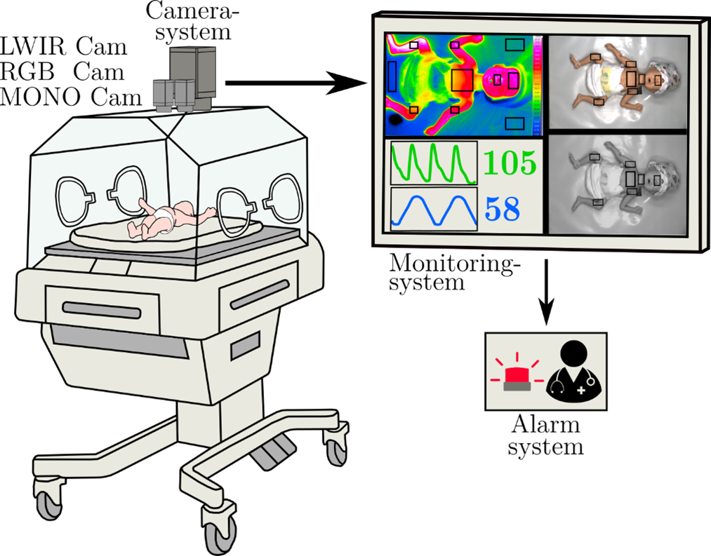 Die Blutvergiftung (Sepsis) gehört bei Früh- und Neugeborenen auf der Intensivstation mit zu den häufigsten Komplikationen überhaupt und bedeutet durch die oft unspezifische Symptomatik bei gleichzeitiger schneller Progredienz eine große Bedrohung im Hinblick auf Mortalität und Langzeitmorbidität. Zur Überwachung der Patientinnen und Patienten werden verschiedene Vitalparameter mithilfe kontaktbasierter Messverfahren wie bspw. EKG und einem PPG (Photoplethysmogramm) aufgezeichnet. Hierbei stellen vor allem die unreife Haut mit der fehlenden Subkutis und die damit verbundene ineffiziente Barriere zur Umwelt des Neonaten Risiken dar, da die Haut beim Wechsel der Klebesensoren zusätzlich verletzt werden kann. Dies kann zu infektionsanfälligen Wunden führen, die in einer lebendsbedrohlichen Sepsis resultieren können.
