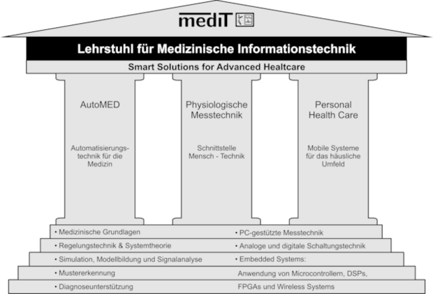 Der Lehrstuhl für Medizinische Informationstechnik beschäftigt sich speziell mit wissenschaftlichen Fragestellungen in den Bereichen "Personal Health Care" und "Automatisierungstechnik in der Medizin".