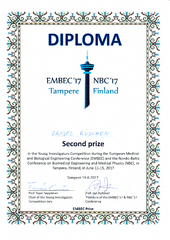 Mit seinem Beitrag "Robust Assistance Control of Left Ventricular Assist Devices" hat Daniel Rüschen auf der European Medical and Biological Engineering Conference (EMBEC) und Nordic-Baltic Conference on Biomedical Engineering and Medical Physics (NBC), 11. - 15. Juni 2017, Tampere, Finnland, den zweiten Platz in der Young Investigators Competition belegt.