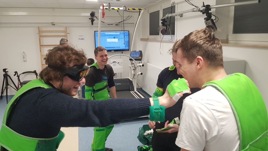 MedIT begrüßt Dr. Havlik und die Studierenden des Studiengangs Biomedical Engineering der CTU Prag. Das Foto zeigt den Besuch im Bewegungslabor bei Dr. Batista.
