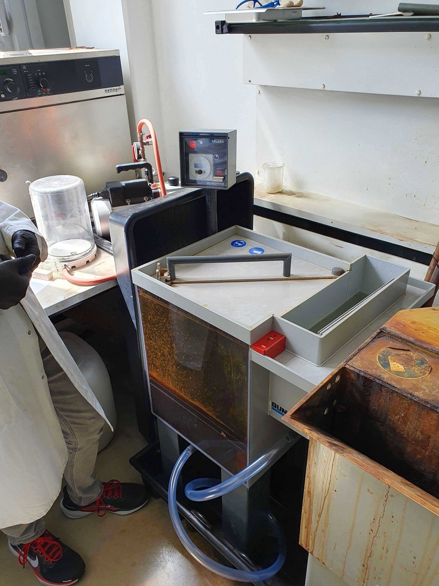 Vor Kurzem haben unsere Laboringenieure Patrick und Felix unsere neue Ätzmaschine in Betrieb genommen, die uns im Zuge der Auflösung eines anderen Labors überlassen wurde.
