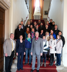 Traditionsentsprechend war auch der Rahmenprogramm der Konferenz- und Exkursionsfahrt exzellent. Neben dem Besuch vieler kulturhistorischer Orte und Museen zählte in diesem Jahr zu den Highlights auch der Besuch der Kirche des Hl. Karl des Großen und der Deutschen Botschaft in Prag, wo - neben der Presseattaché der Botschaft Frau Freytag (vorne links) - die Teilnehmer auch vom Rektor der CTU Prag, Herrn Professor Konvalinka (Bildmitte), begrüßt wurden. (Foto: S. Liebich)