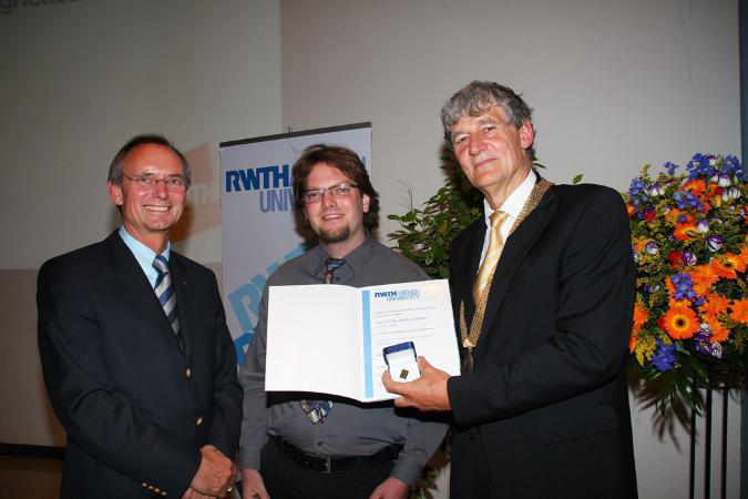 Unter den diesjährigen Preisträgern der Borchers-Plakette für Doktoranden, die ihre Doktorprüfung "mit Auszeichnung" bestandenen haben, befindet sich auch Dr.-Ing. Matthias Steffen mit seiner Dissertation über die "Kontaktlose Überwachung der Herz- und Atemaktivität mit magnetischer Induktion".
