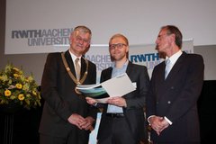 Unter den diesjährigen Empfängern befindet sich auch ein ehemaliger Student und jetziger Mitarbeiter des Philips Lehrstuhl für Medizinische Informationstechnik. Herrn Daniel Rüschen, M.Sc. wurde zusammen mit den anderen Preisträgern am 20. Juni durch den Rektor der RWTH Aachen, Univ.-Prof. Dr.-Ing. Ernst M. Schmachtenberg, und den Vorsitzenden von proRWTH, Dr.-Ing. Dipl.-Wirt.Ing. Gunther Voswinckel, ausgezeichnet. Die 1925 durch die Gesellschaft von Freunden der Aachener Hochschule gestiftete Auszeichnung wird jährlich an Absolventen der RWTH verliehen, welcher Ihre Diplom-, Magister- oder Masterprüfung mit Auszeichnung bestanden haben.